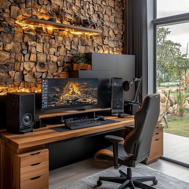 Natural textures and soft lighting create a space that feels warm, grounded and real. A setup that invites calm and focus every time you sit down.